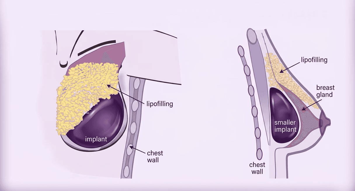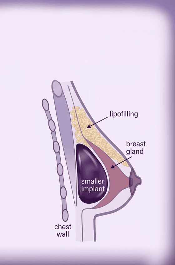 The hybrid breast lift is an advanced procedure that combines a moderately sized silicone implant with autologous fat grafting (lipofilling). This technique organically softens transitions, customizes cleavage contours, and effectively erases the visual boundaries between surgical enhancement and natural anatomy.
