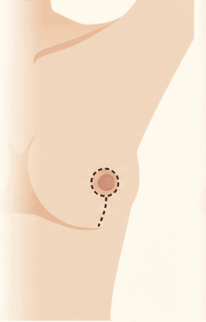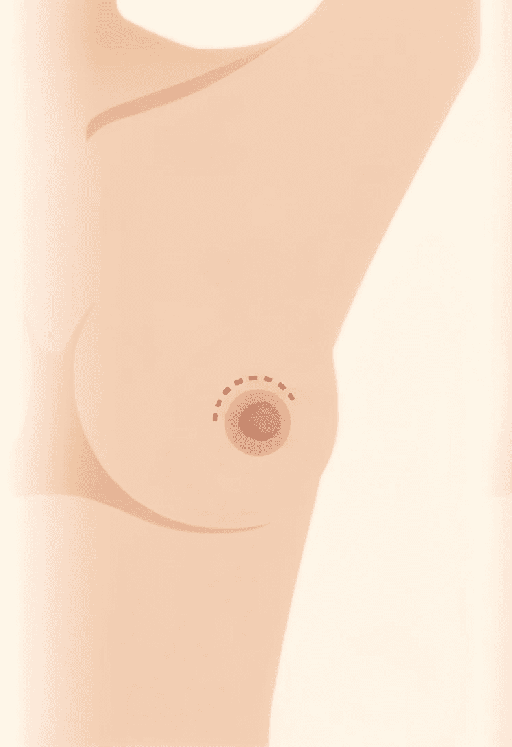 Confines the scar to the periareolar border; indicated for mild Grade I ptosis.