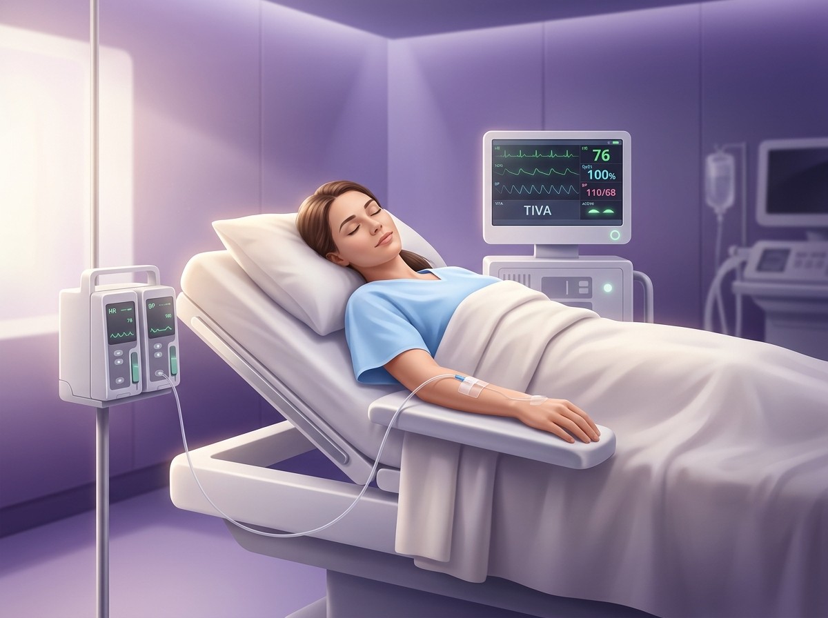 We employ Total Intravenous Anesthesia, a modern technique that induces complete, safe unconsciousness without the use of traditional inhalation gases. The primary benefits include precise physiological control, a remarkably smooth and rapid wake-up phase, and near-zero postoperative nausea and vomiting (PONV), allowing you to begin recovery feeling clear-headed and comfortable.