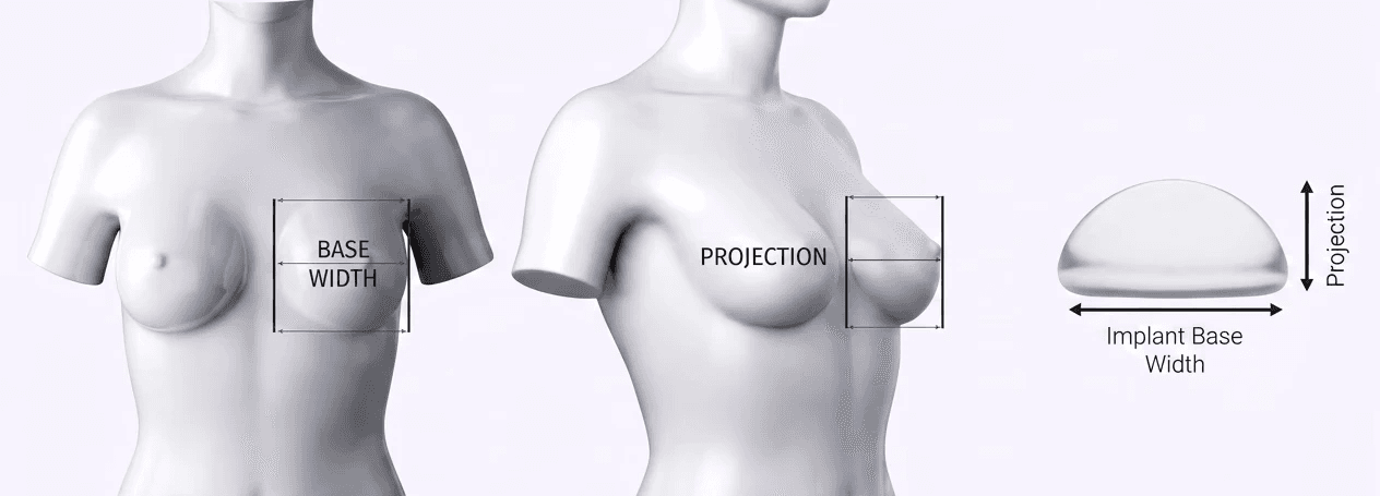 Selecting the correct implant requires calibrating its volume and base width against the patient's native tissue and thoracic dimensions. The implant's base width must perfectly match the patient's muscular pocket. Once the optimal base width is determined by the chest wall anatomy, the patient can choose the degree of forward projection to achieve their desired volume.
